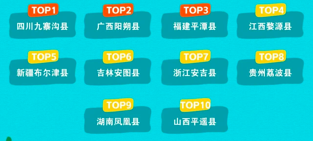 2000 个县城成热门 去哪儿数据显示,国庆期间用户预订了全国 2000 多个县城的酒店,其中四川九寨沟县、广西阳朔县、福建平潭县的预订量位列前三。