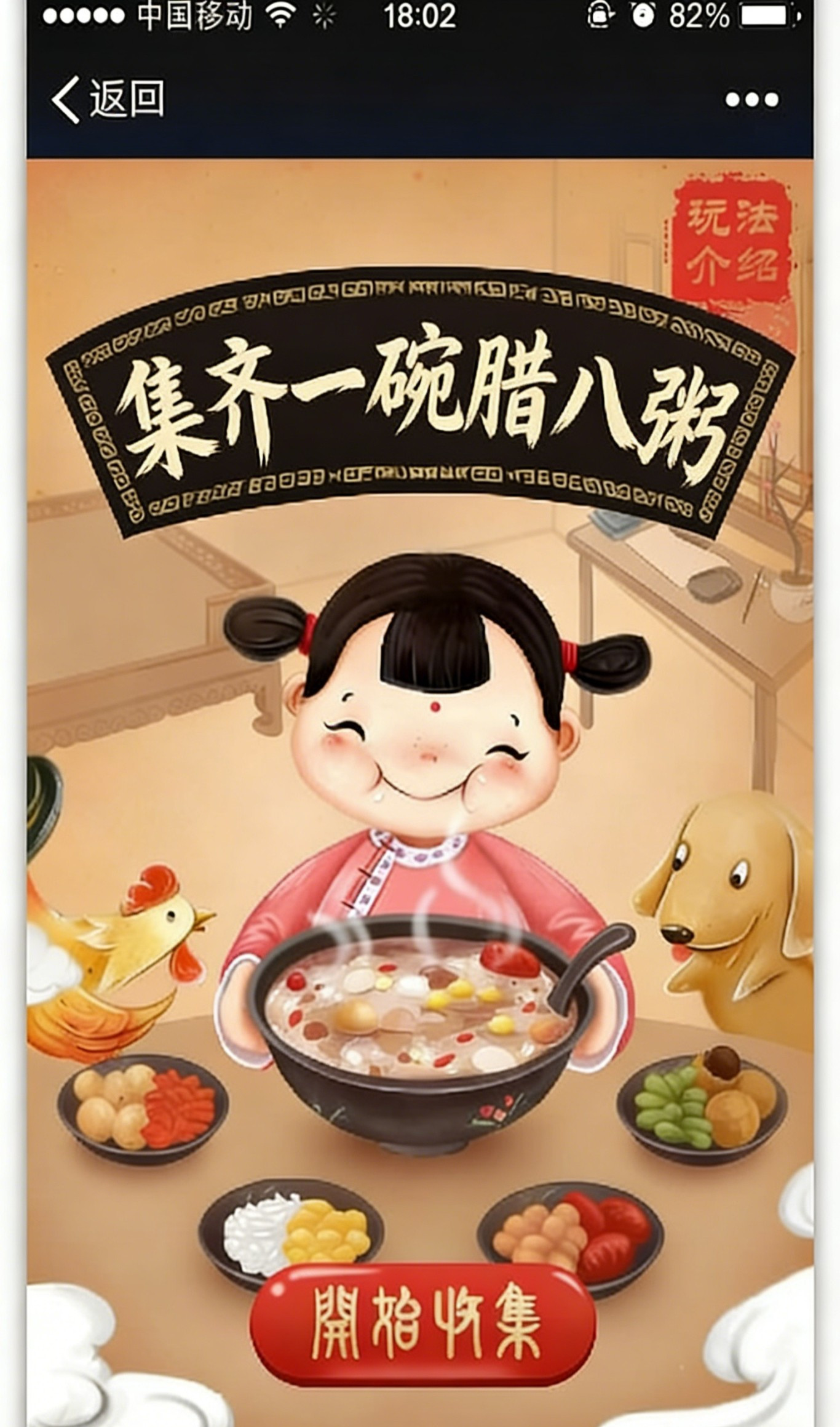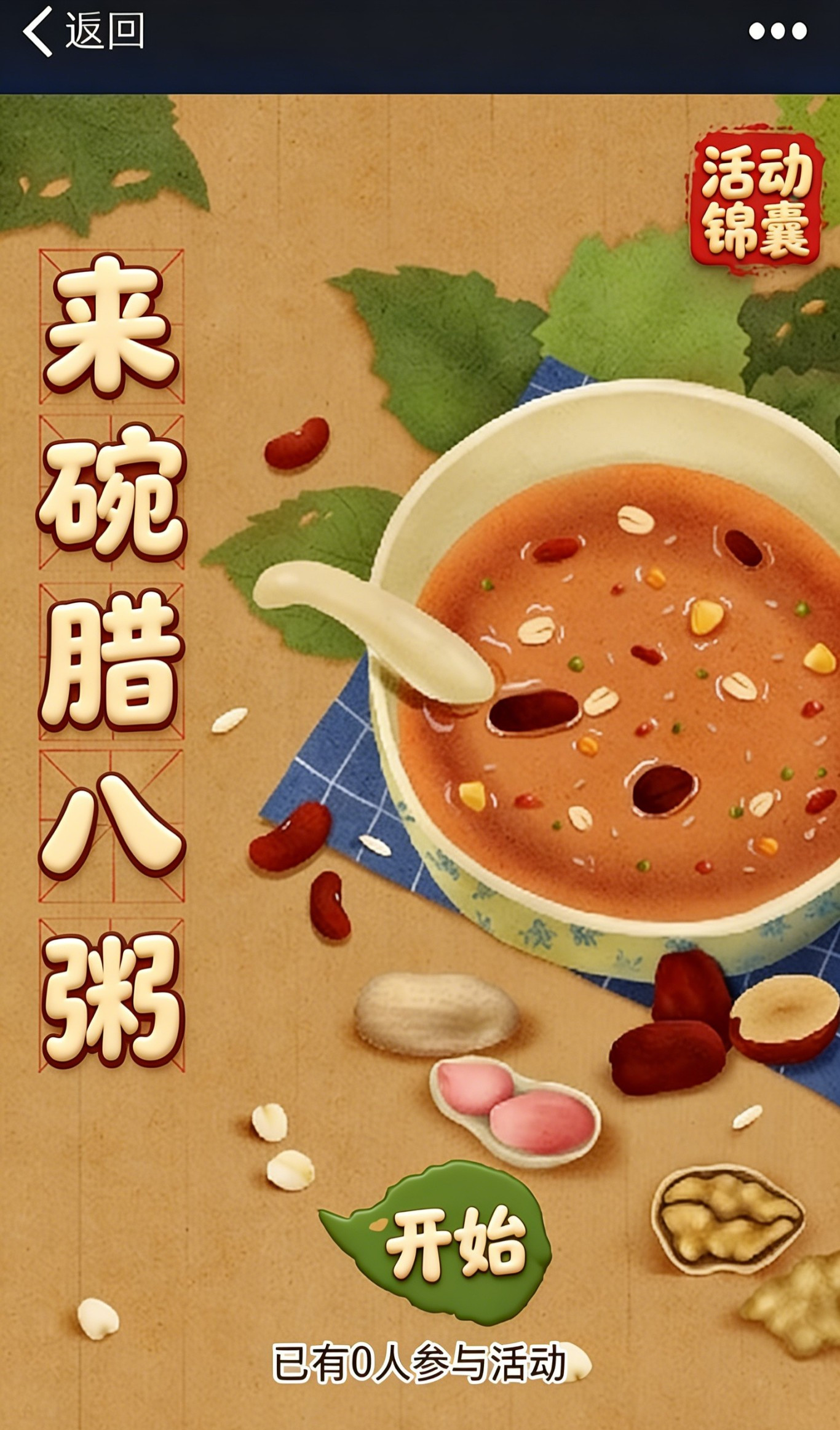 (腊八节游戏) 以节气祝福或节气宣传为主题,利用微传单H5,结合品牌进行传播;